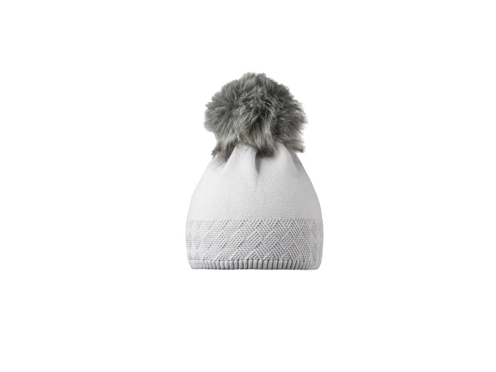 Elegantní dámská zimní čepice s bambulí z umělé kožešiny s jemným plastickým vzorem.