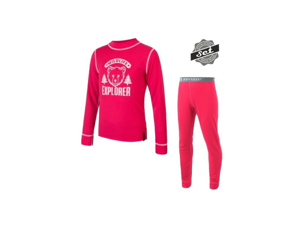Dětský funkční termo set Sensor Double Face Wild: Triko s dlouhým rukávem + spodky Fialová