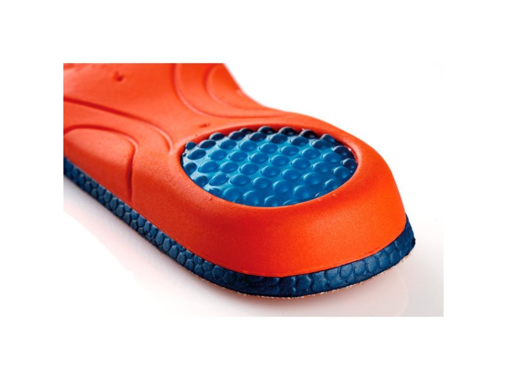 Vložky do bot s gelovým tlumením, které díky svému 3D tvaru skvěle podpoří nožní klenbu a rozloží tlak na podložku. V patě a předonoží jsou vyměkčené gelovým polštářem pro tlumení charakteristických nárazů na patní kost a odlehčení přetěžovaného předonoží. Horní povrch gelových vložek je z antibakteriální tkaniny.