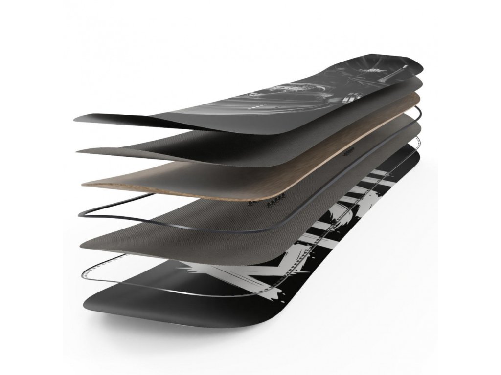 - Triax laminát - pokročilý způsob laminace dodává snowboardu perfektní trozní tuhost. Díky tomu prkno skvěle drží v oblouku a při dopadech.
