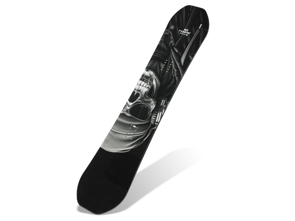 Šířka a délka špičky i patky jsou stejné. Inzerty a postoj jsou dokonale vystředěny bez posunutí dozadu. Stejným způsobem můžete jezdit buď pravou (goofy) nebo levou nohou dopředu (regular). Takže v souhrnu je na snowboardu vše symetrické.