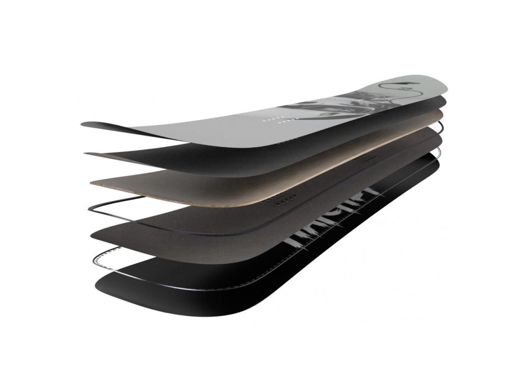 - Triax laminát - pokročilý způsob laminace dodává snowboardu perfektní trozní tuhost. Díky tomu prkno skvěle drží v oblouku a při dopadech.