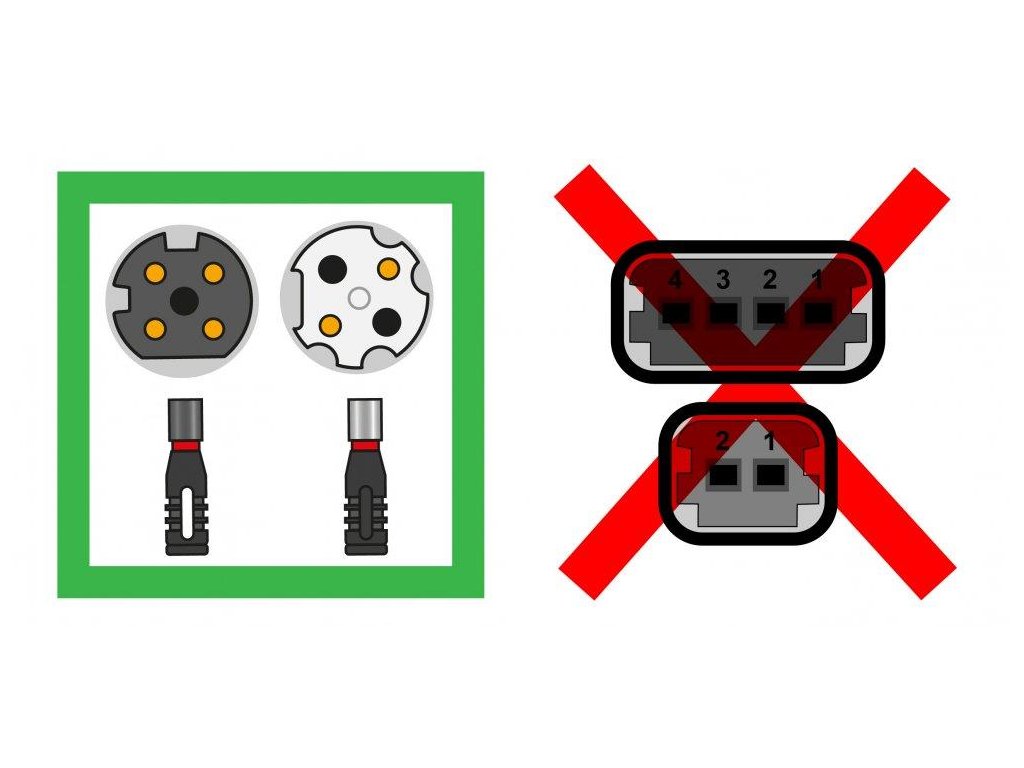 Konektory samec – samice zapojuj ve směru zámku. S konektory během zapojování neotáčej!