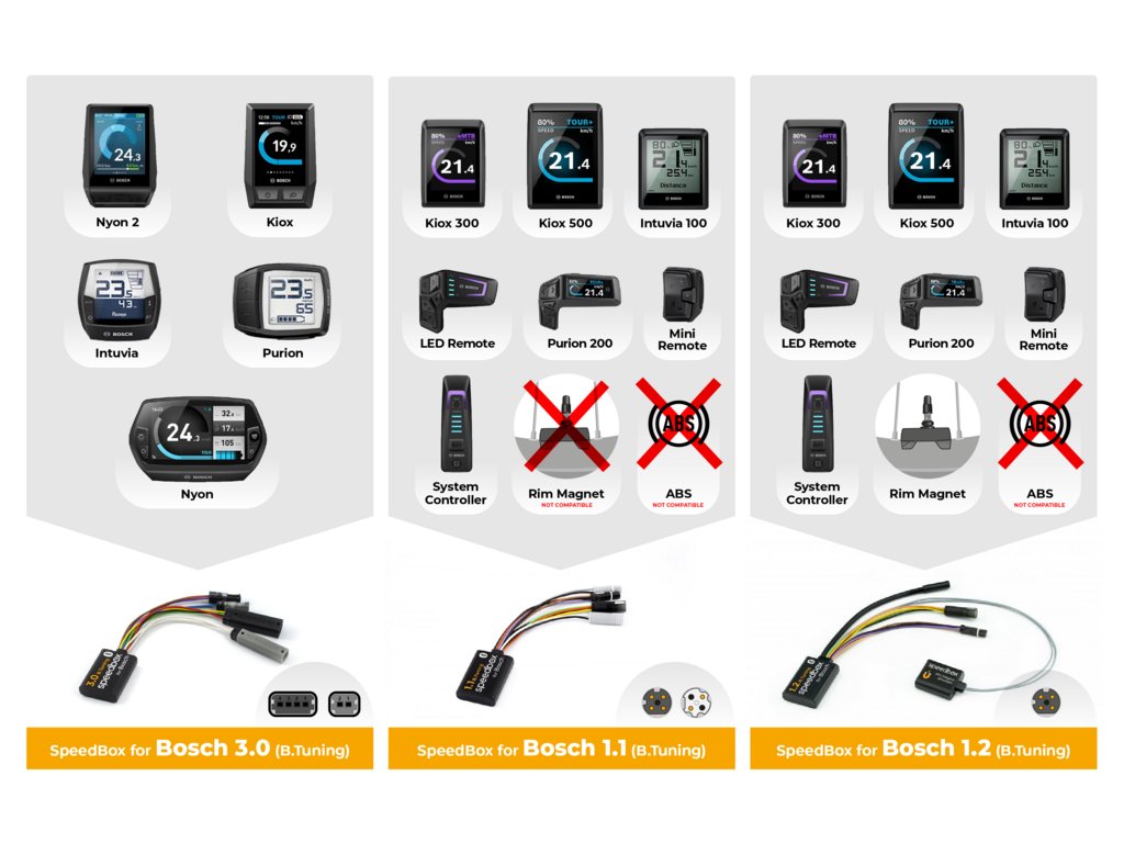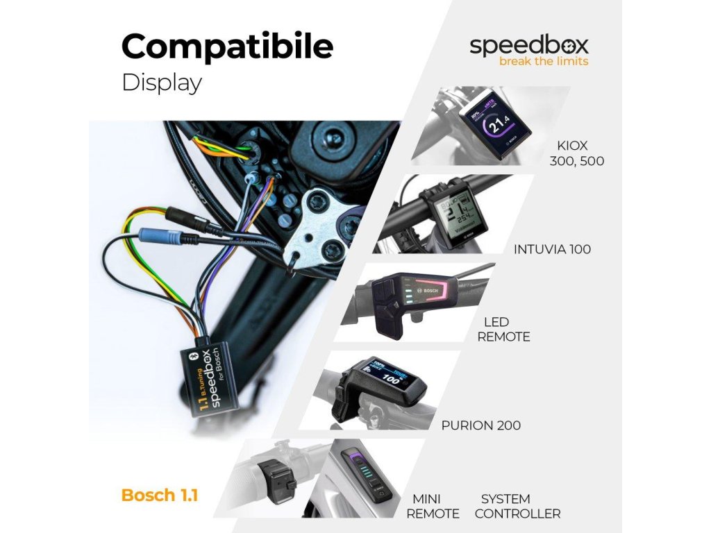 SpeedBox je česká značka tuningových čipů pro elektrokola (Ebike Electronic s.r.o.). Čipy odstraňují tovární rychlostní limit u motorů Bosch, Shimano, Brose, Yamaha, Giant a dalších. Nabízejí různé verze (SpeedBox 1.x, 2.0, 3.x) včetně variant s Bluetooth a mobilní aplikací. Instalace je jednoduchá a výrobky jsou určeny pro hobby i náročnější uživatele.