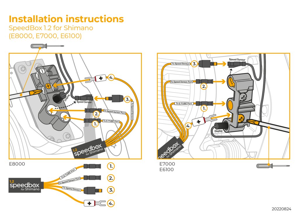 Tento nový produkt se oproti předchozím verzím zapojuje i do E-Tube portu motoru. Je tedy potřeba, aby motor elektrokola, do kterého se chystáte novou verzi SpeedBox for Shimano nainstalovat, měl k dispozici jeden volný E-Tube port. V případě, že nemáte volný E-Tube port, zvolte, prosím, variantu “+E-Tube Port”.