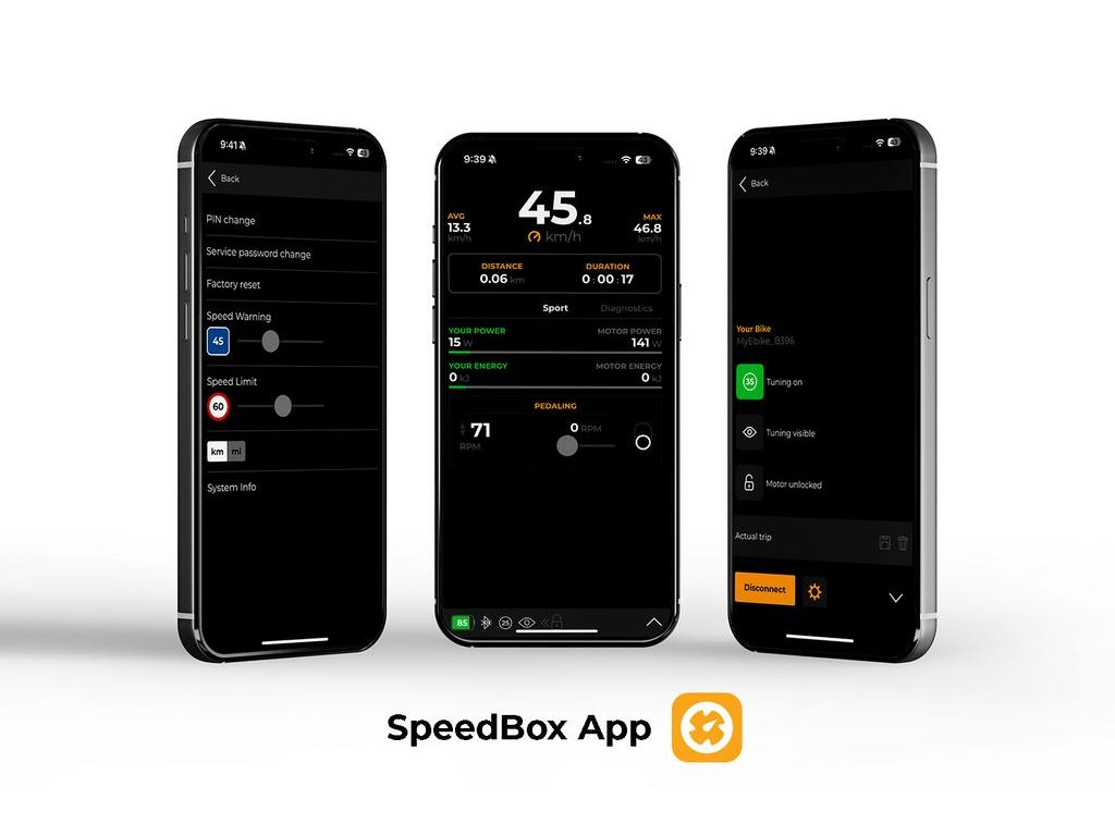 Aplikace SpeedBox App určená speciálně pro SpeedBox B.Tuning používá technologii Bluetooth k propojení tvého elektrokola s mobilním telefonem. Po stažení aplikace a propojení mobilu s elektrokolem vidíš na displeji telefonu aktuální data a parametry jízdy. Jednotlivé výlety můžeš ukládat, porovnávat s přáteli a sledovat vlastní výkony. Můžeš si tak naplno užívat jízdu a kontrolu parametrů nechat na později.