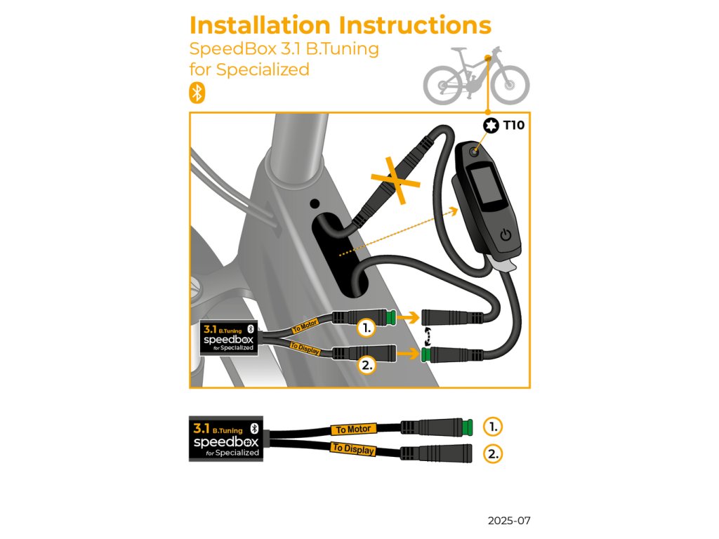 SpeedBox je instalován pod jednotku TCU/MasterMind TCU v rámu kola. Po zapnutí se zobrazí max. rychlost přípomoci 50 km/h. Aktivace tuningu se uloží dvojitým vypnutím a zapnutím kola.