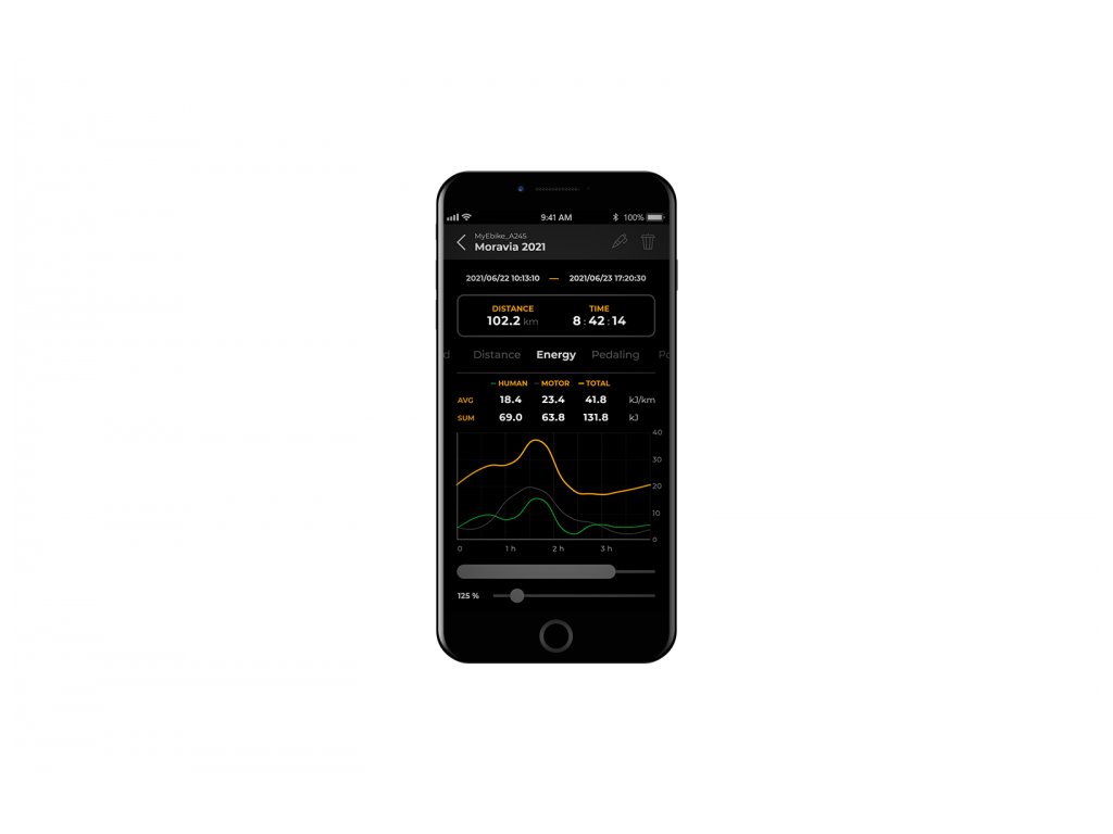 Aplikace SpeedBox App určená speciálně pro SpeedBox 3.2 B.Tuning používá technologii Bluetooth k propojení tvého elektrokola s mobilním telefonem. Po stažení aplikace a propojení mobilu s elektrokolem vidíš na displeji telefonu aktuální data a parametry jízdy. Jednotlivé výlety můžeš ukládat, porovnávat s přáteli a sledovat vlastní výkony. Můžeš si tak naplno užívat jízdu a kontrolu parametrů nechat na později.
