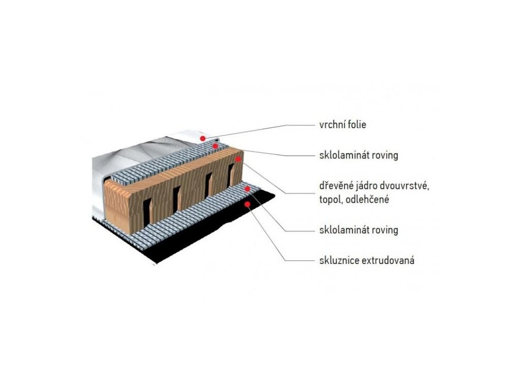 - dřevěné jádro Kombinace bukového a topolového dřeva. Žádný moderní materiál dosud nedokázal nahradit jedinečné fyzikální vlastnosti dřeva. Dřevo zajišťuje mimořádnou tuhost, pružnost a stabilitu.